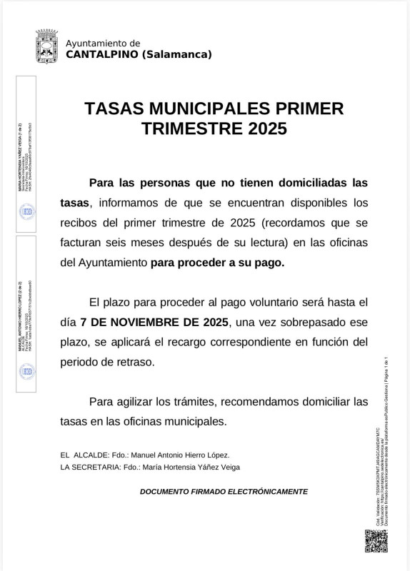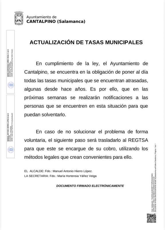 El Ayuntamiento de Cantalpino se pone al día con las tasas municipales