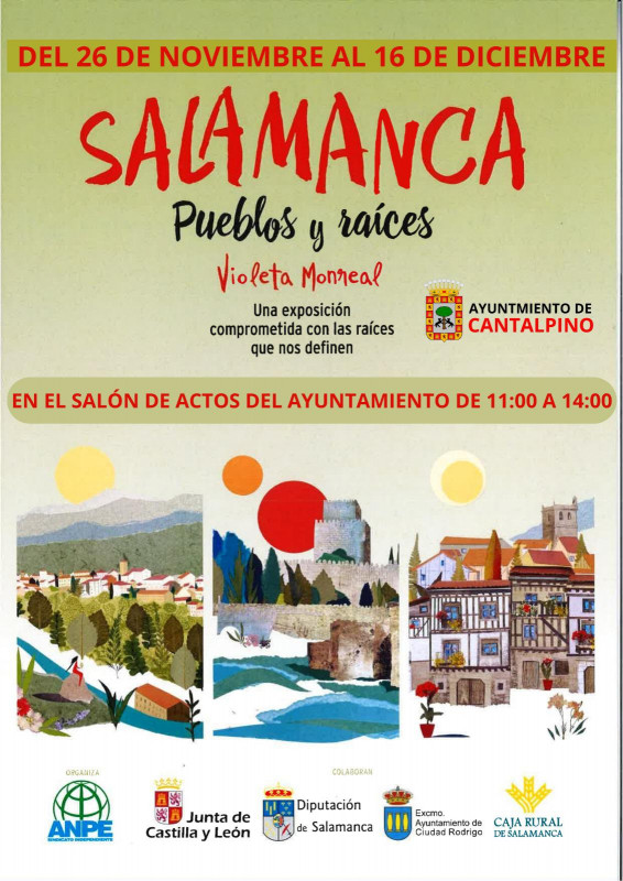 El Ayuntamiento de Cantalpino inaugura hoy la exposición “Salamanca: Pueblos y raíces”, una muestra artística de Violeta Monreal que pone en valor la identidad cultural, la tradición y el patrimonio visual de los pueblos salmantinos.